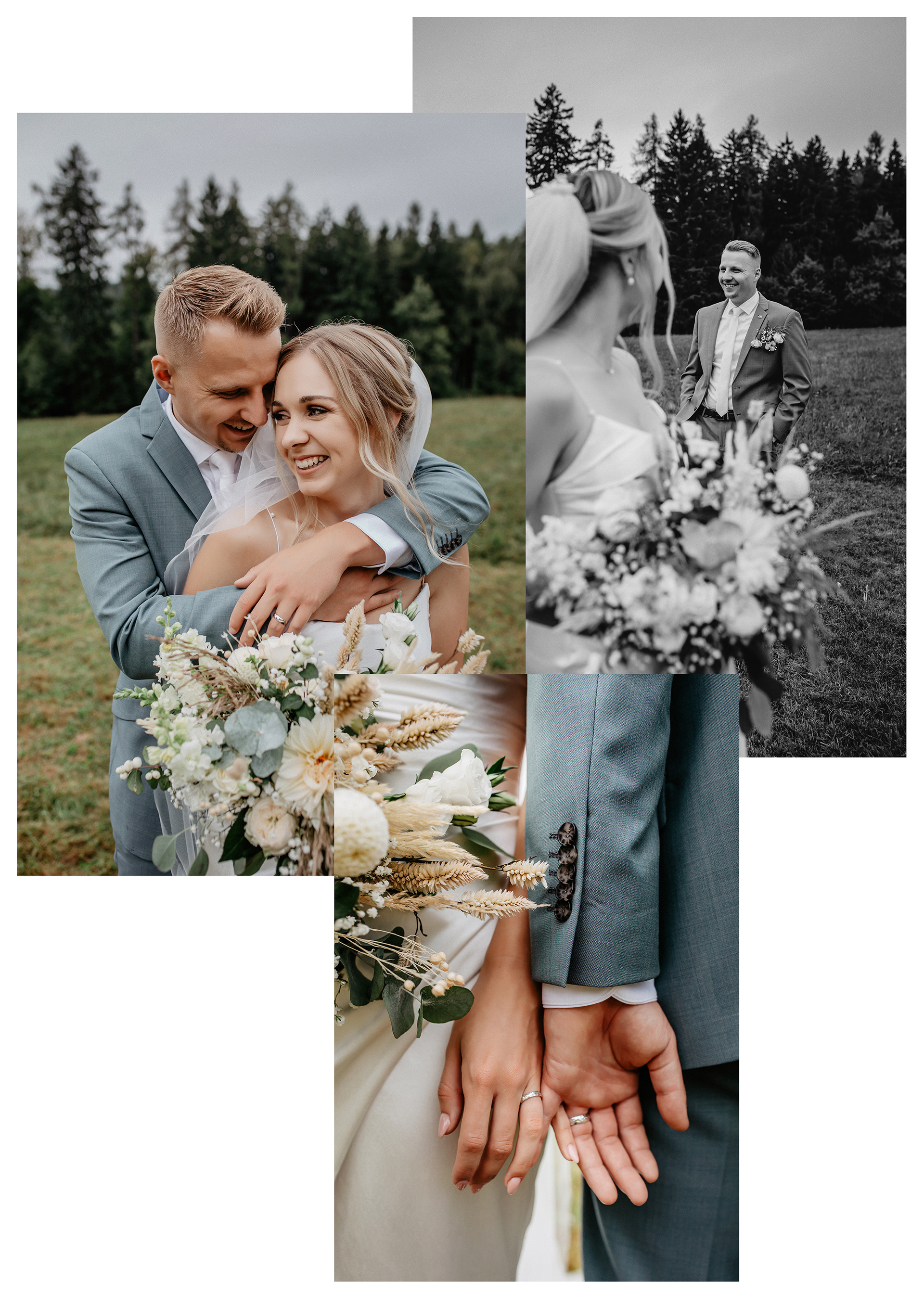 Zhruba týden před svatbou si dáme osobní schůzku. Nabízím ji spojit s krátkým předsvatebním focením. Pomůže vám to zbavit se trémy a zjistit, že objektivu není třeba se bát. Zároveň společně projdeme harmonogram a určité záchytné body, aby v den svatby nevznikal zbytečný tlak.